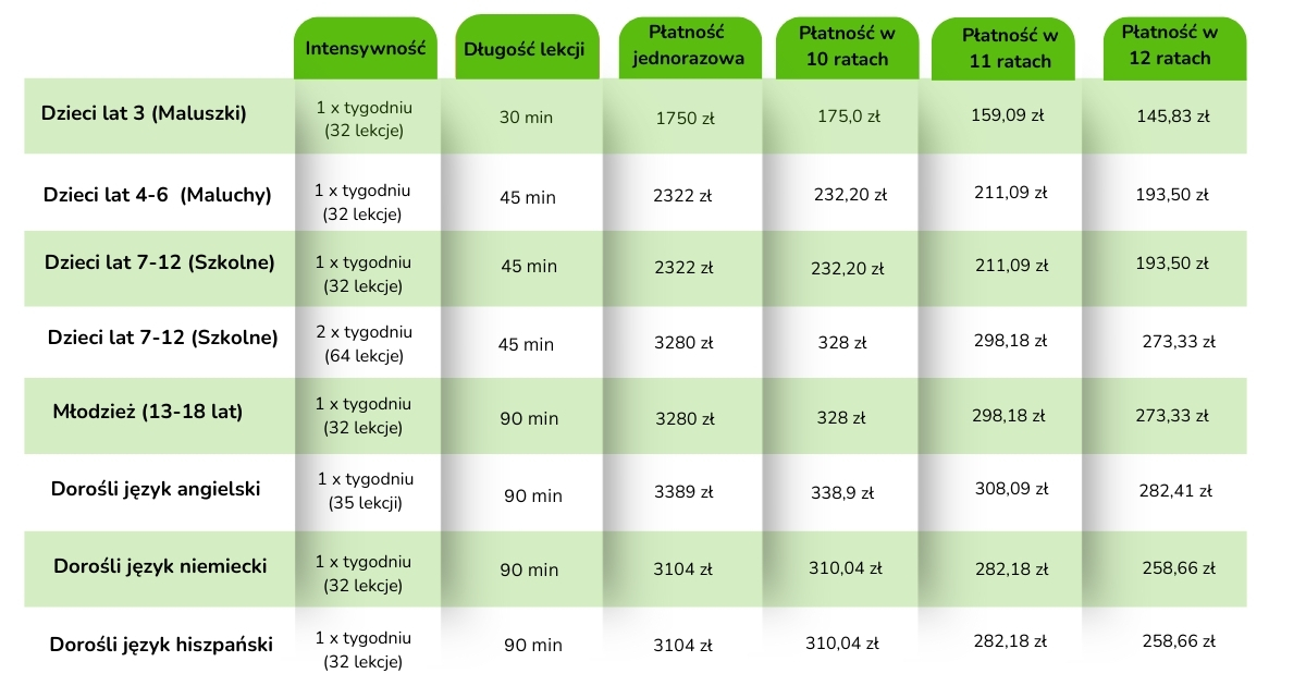 Poniżej przedstawiamy naszą ofertę kursów językowych na rok szkolny 2025/26
